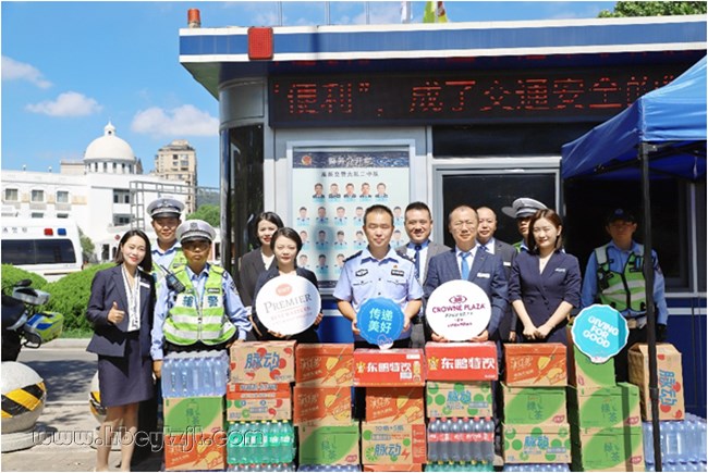 合肥皇冠假日酒店總經(jīng)理戴慶豐先生表示:“交警同志們頂烈日、戰(zhàn)酷暑,守護市民出行安全,是當之無愧的城市英雄。我們特意準備這些飲品,希望能為大家及時補充水分、緩解暑氣,以此表達誠摯的敬意。”